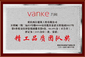万科E区三期二标荣获万科集团中西部区域2017年3季度综合评估第一名