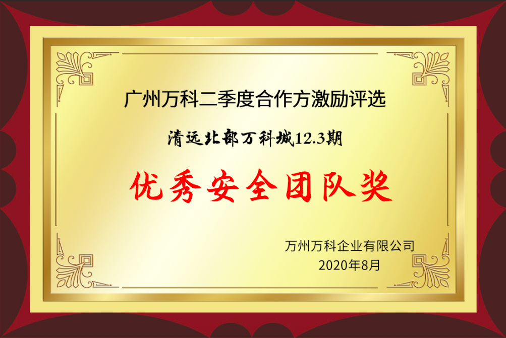 2019年万科集团中西部区域三季度评估安全文明第一名